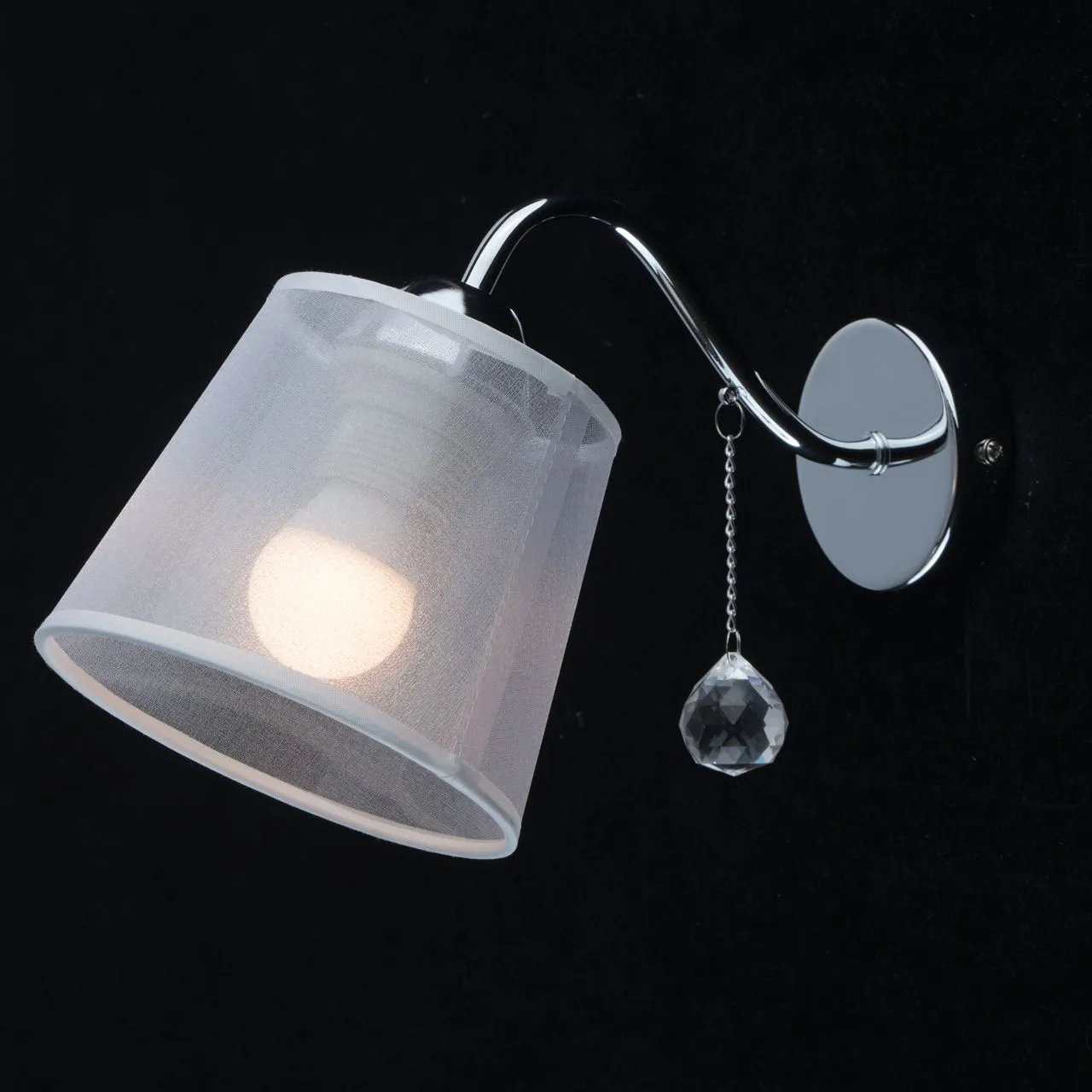 Основание/ металл/ хром. Абажуры/текстиль/ белый. Декор/ прозрачный хрусталь
