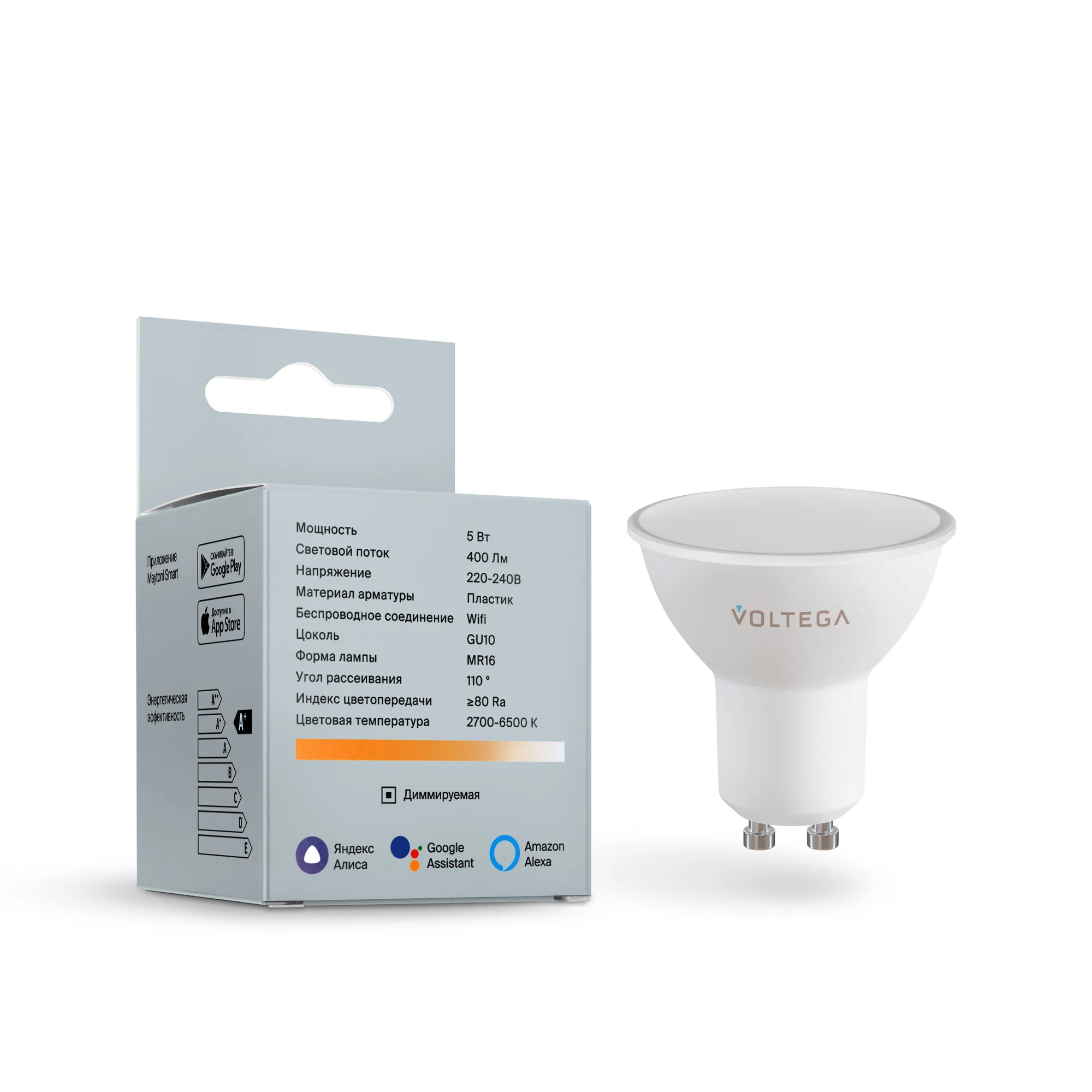 Лампа светодиодная диммируемая Voltega GU10 5W 2700К матовая VG-MR16GU10cct-WIFI-5W 2425 купить в Севастополе по лучшей цене