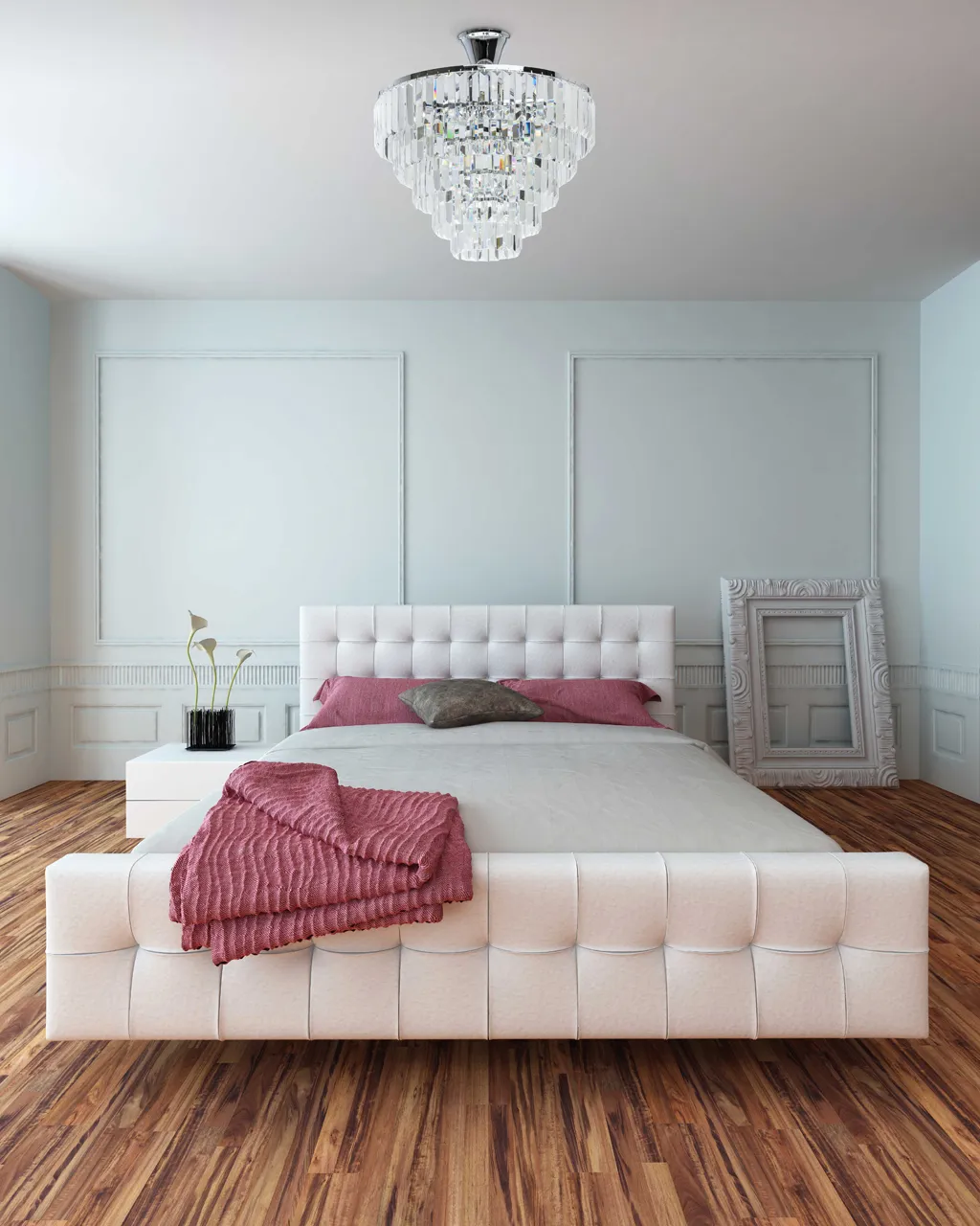 Металлическое основание цвета хрома. Декор: хрусталь.